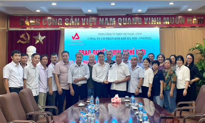 Vừa qua, Công ty cổ phần Kim khí Hà Nội – VNSTEEL đã tổ chức buổi gặp mặt, trao quyết định nghỉ chế độ hưu trí cho ông Nguyễn Đức Thăng – Tổ trưởng bảo vệ thuộc Phòng Đầu tư – Dịch vụ và ông Trần Ngọc Minh – Tổ trưởng Kinh doanh thuộc Xí nghiệp KDKK số 2 sau nhiều năm gắn bó, tận tâm cống hiến cho sự phát triển của công ty.