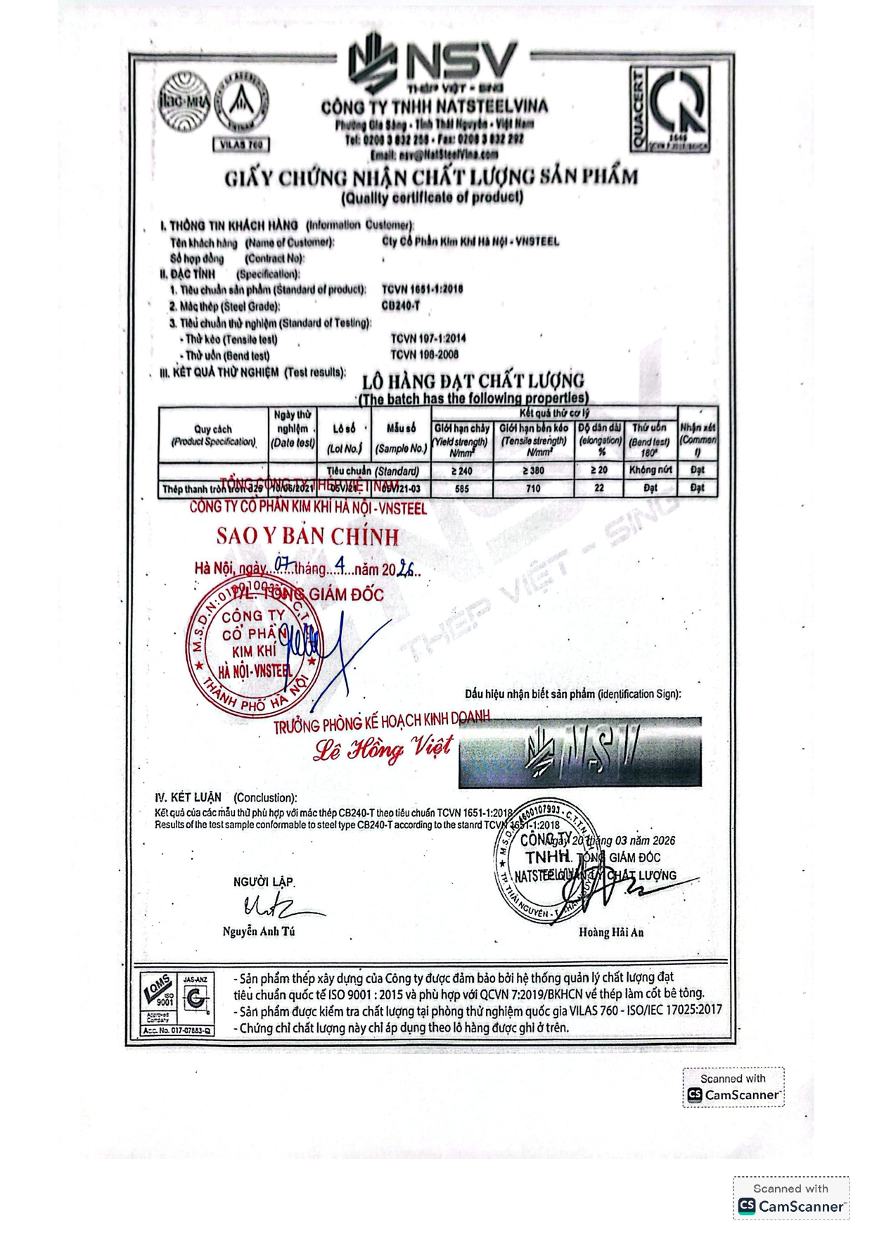 CÔNG TY CỔ PHẦN KIM KHÍ HÀ NỘI-VNSTEEL